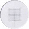 Слайд представляет собой круглую пластину диаметром 24 мм, сделанную из оптического стекла. На нее нанесено перекрестие с 200 делениями микрометрической шкалы (цена деления – 0,05 мм) и сетка размером 10х10 мм. Каждая ячейка имеет размер 0,5х0,5 мм, всего в ряду помещается 20 ячеек. Слайд можно использовать с микроскопами любых марок.